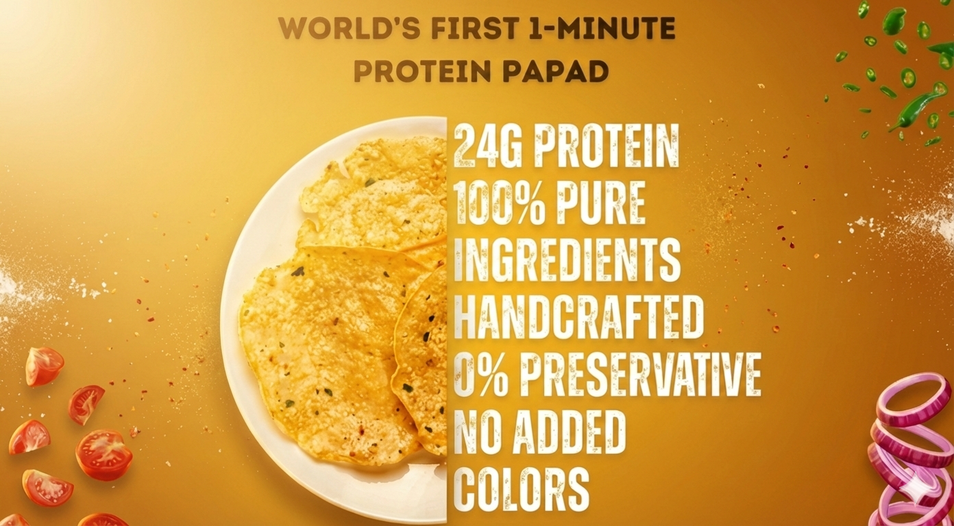 INDIA’S HIGHEST-PROTEIN PAPAD ✦ MAKING EVERY THALI PROTEIN-RICH ✦ ANCIENT RECIPES. MODERN NUTRITION. ✦